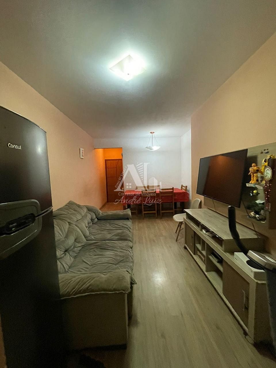 • O imóvel conta com 3 quartos, sala de TV, cozinha com móveis planejados, banheiro social, área de serviço e sacada. Permanecem no imóvel os móveis planejados da cozinha e os guarda-roupas dos quartos.