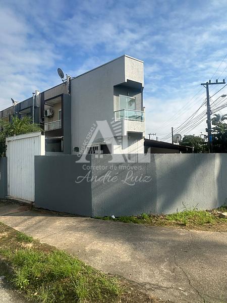 Casa geminada de esquina no bairro Itinga Joinville com amplo quintal área de lazer coberta com churrasqueira, vários comércios nas proximidades e de fácil a acesso as praias da região.